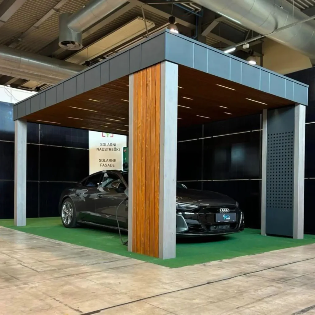 Solarni nadstrešek je produkt sodelovanja s podjetjem Konstrukcije Gašper, ki je specializirano za izdelavo ter postavitev lesenih nadstreškov, teras in ostalih konstrukcij.
